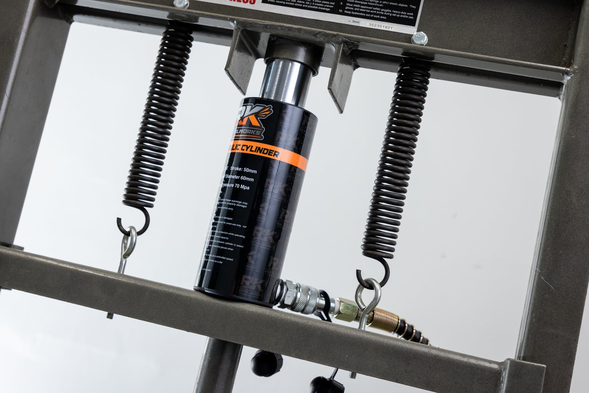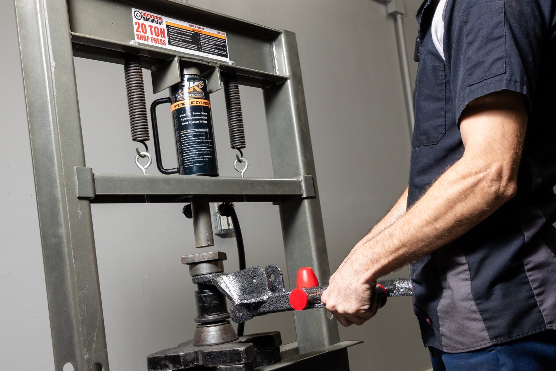 Simply remove your original hand pump off of your press and install our 20-ton hydraulic ram in its place.